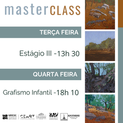 As Masterclasses, idealizadas pela Prof. Dra. Titular Jociele Lampert, serão ministradas pelo Prof. Me. Pedro Henrique Cavallari, um dos curadores da mostra, e por Me. Fabio Savicki, que fez parte da concepção expográfica. Apoio: Grupo de Estudos Estúdio de Pintura Apotheke.